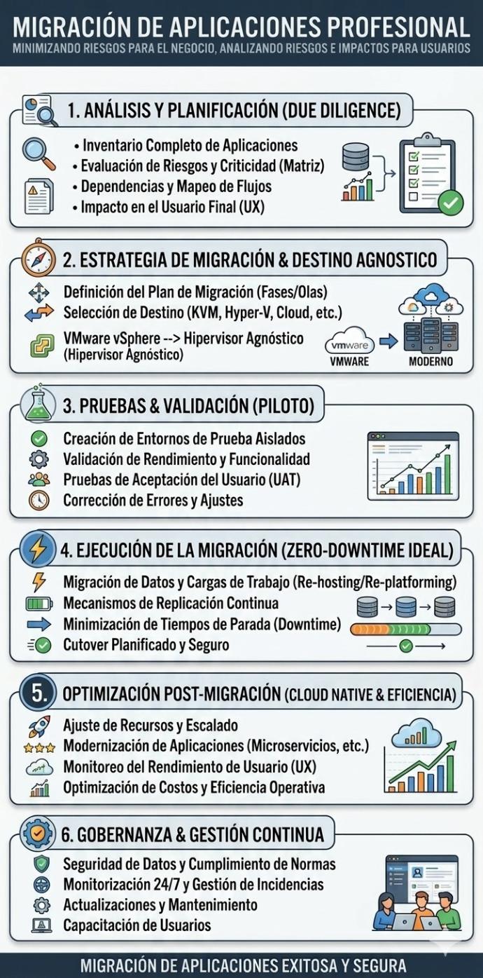 Realice una migración de aplicaciones minimizando los riesgos para su negocio, analizando los riesgo he impactos para su usuarios.